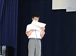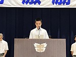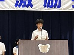 7/9(火)の朝会にて、県夏季総体の激励会と城熱博(学習発表会)についてのプレゼンを生徒会総務が行いました。