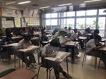 どの学年も一生懸命テストに励んでいました。明日は数学・社会のテストを実施します。