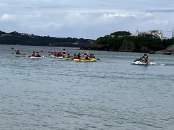 開会式、校長先生からの「天気は大丈夫!」の言葉にみんな安心しました。