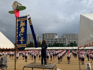 全学年の児童が参加した旗頭演舞!勇壮でした!