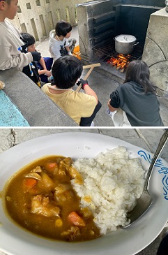 自然教室2日目。みんなで協力し,カレー作りに挑戦しました。
