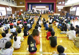 体育館で下級生への発表を行いました。美しいハーモニーに児童も先生方,事務室の方々も聴き入っていました。