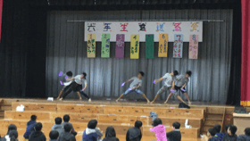 6年生を送る会では、各学年が6年生に喜んでもらおうと、いろいろな出し物を練習して披露してくれました。