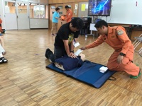 胸骨圧迫とAEDの使い方について、西消防署の方々からマンツーマンで指導してもらいました。