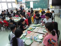 カレーライスや野菜サラダ、デザートのプリンをおいしそうに食べていました。