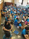 壺屋焼のかけらをさわりながら、学芸員の話を聞きました