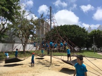 食後は遊具に乗ったりボールを使ったりして遊びました