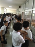 開式前、5年生が6年生の教室に行ってコサージュをつけました。