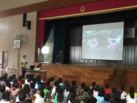 松田校長がオオゴマダラやモンシロチョウ、鳥の雛など春になってからの動植物の様子について、写真や動画で紹介しました。