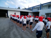 もとぶ元気村にて、準備体操&みんなで準備を終え、いよいよ体験プログラムが始まります。