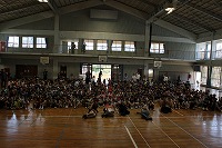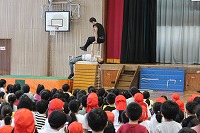 「筋肉であなたを笑顔にする」を合い言葉に各地で公演を行っているハッスルマッスルのみなさんが、本校の保護者からの紹介を通して特別に本校で公演を開催しました。