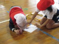 1年生と2年生が、体育の時間や朝の時間に練習してきたなわとびの記録会を行いました。