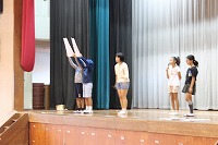 全校朝会で、保健委員会がゲーム依存症についての話をしました。