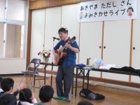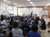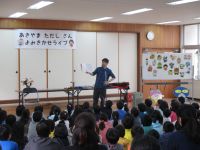 1年生の児童はあきやま氏の表情豊かな語り口にひきこまれて、終始ニコニコ顔でした。