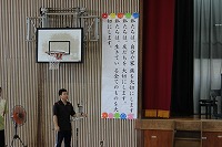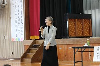 対馬丸記念館の外間邦子氏を招いて、米軍の魚雷による攻撃で撃沈された疎開船「対馬丸」の悲劇について講話を行いました。戦時中の悲しみを通して、子どもたちに平和の大切さや命をつなぐという意味について話しました。