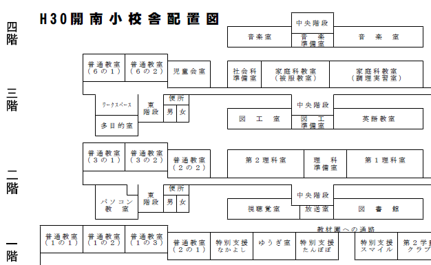 1階は1年1組、1年2組、1年3組、2年1組になります。