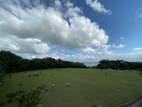 部屋に荷物を置いたら、青空の下で体を動かして遊びました。