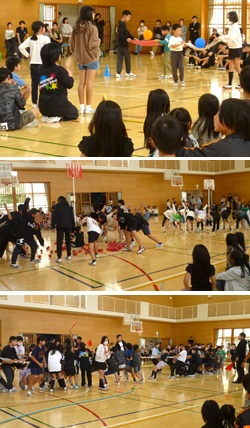 1年生との「風船リレー」2年生からは「歌とメダルのプレゼント」3年生は「玉入れ勝負」4年生からはキレッキレの「ダンス」5年生とは威信をかけた「五色綱引き」を行いました。