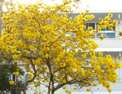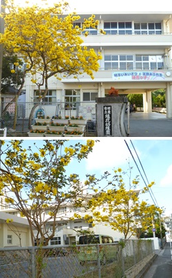 学校校門の所にあるイッペー(和名:コガネノウゼン)の黄色い花が満開です。