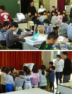 垣花こども園の年長児12名が,小学校の施設見学に来ました。理科のお勉強の様子や家庭科室等,いろいろと見学しました。