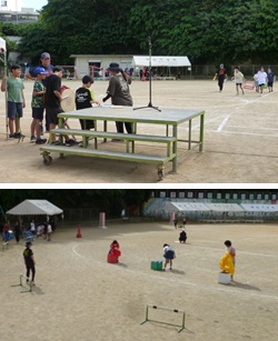11/2に行われる「小禄地区市民大運動会」に垣花小学校代表で出場する8名の選手達。教頭先生が中心になって,始業前の朝に練習しています。本番目指して真剣に取り組んでいます。