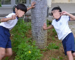 「校長先生お手伝いすることありませんか」と声かけがあり,花壇の雑草取りをがんばりました。
