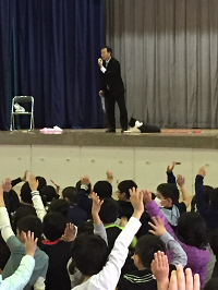 2学期後半スタートです!犬年なので、校長先生がワンちゃんを連れてきてくださいました!本物登場にみんなびっくり!夢をもつことチャレンジすること、学ぶことの大切さについてお話がありました。