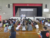 全校児童を体育館に集めた後、警察署のほうから「いかのおすし」について話などがありました。