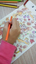 ⑦ぬりえクラブは、細かい所も丁寧に色の構成を考えながら、仕上げていました。