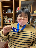朝から、校長室をノックする児童がいました。満面の笑顔と大事そうに抱えている金メダルが目に入りました。なんと、なんとうれしい優勝報告でした。小さな頃から柔道に取り組んでいる未来の柔ちゃんこと、本校4年生の上原愛菜さんでした。厳しい練習をこなしながら、よくがんばりましたね。おめでとうございます。そして報告もありがとう。