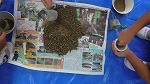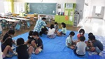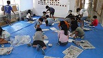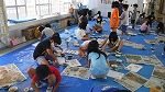 児童の皆さん、ワークシートに広げられたブルーシートにグループ毎に集まり、協力し担当する色の土を細かくしていました。またその後に行った絵を描く場面でも自分の描きたいテーマに沿って楽しく取り組んでいました。子ども同士の笑顔がとても輝いていました。本日おいでいただきました先生方、丁寧なご指導、本当にありがとうございました。