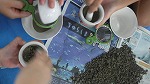 本日3年生は壺屋焼博物館の先生方や恩納村在住の先生方をお招きして図工の出前授業「土で絵を描こう!」を行いました。様々な色の土を集め、乾かしたり、ふるいにかけたり、乳鉢ですりつぶして粒を細かくし、それを絵の具として画用紙に絵を描くことが本日の授業内容です。