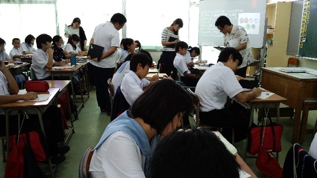 去る9月14日(月)5校時,栄野元教諭による一年一組の数学の研究授業を行いました。授業後は,図書室の方で授業研究会を行い,太田指導主事より貴重なお話を聴くことができました。