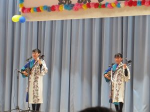 素敵な司会がフェスタをスタートし、歌やダンス・漫才などを楽しみました。
