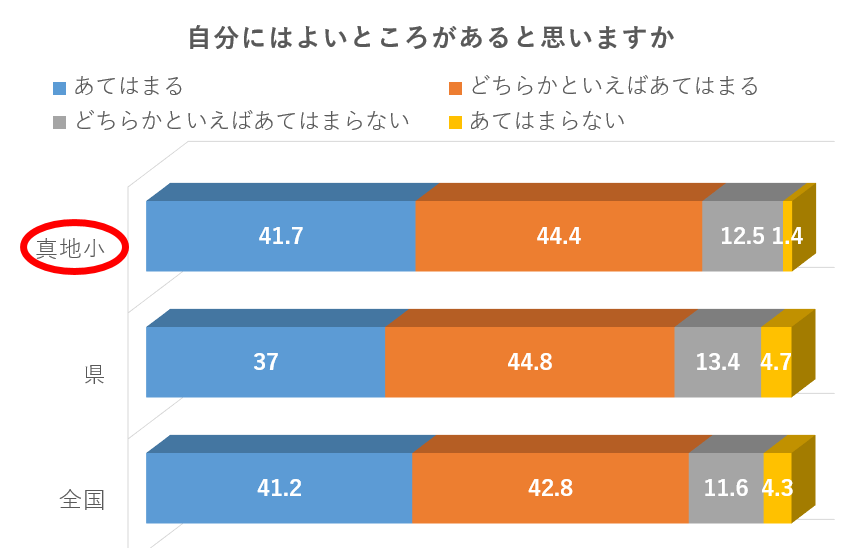 だから、真地小の子どもたちは自分の良さを実感している子の割合が多のでしょうか。