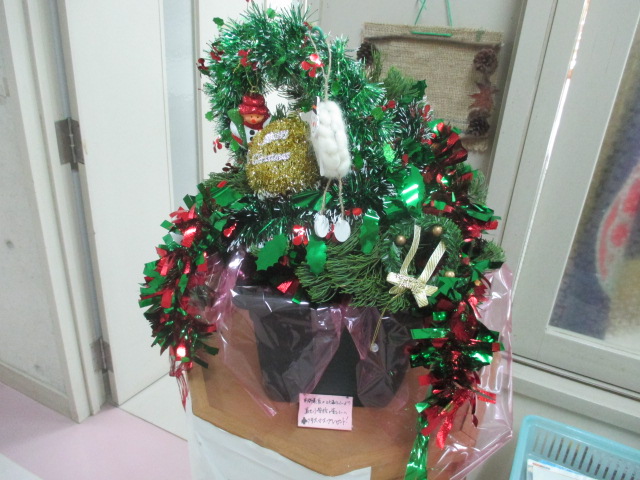 すてきなプレゼントが届けられました。前評議員の比嘉さんからクリスマスの贈り物です。子どもたちが集まり、校長室入り口が華やいでいます。