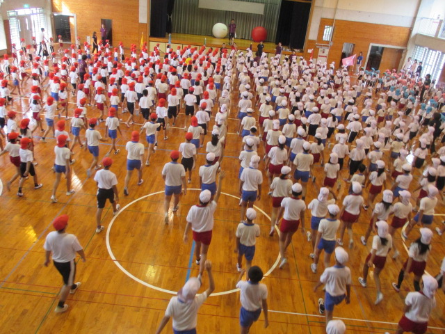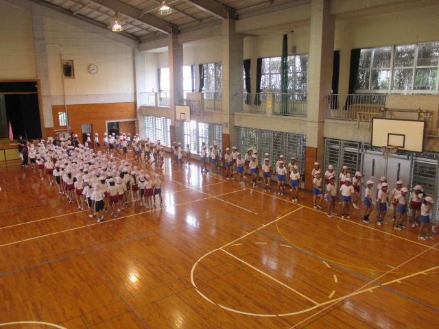917運動会にむけて第3回目の全体練習が体育館で行われました。