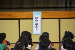 今日のお話朝会は,校長先生から『時の記念日』についてのお話でした。