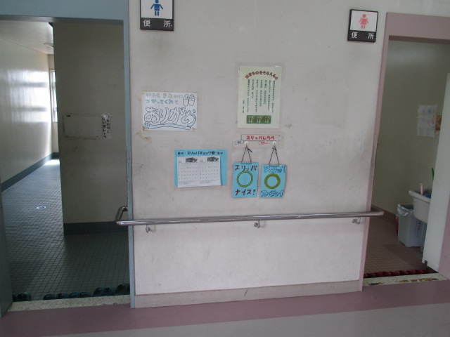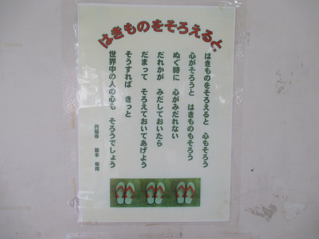 各階のトイレには「はきものをそろえると」の詩と、生活委員会による点検表があります。