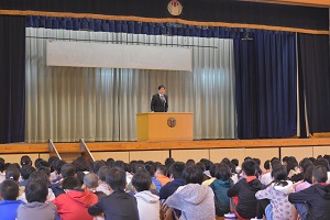 朝会ではチャイムが鳴ると皆黙想します。するとざわつきがだんだんなくなり、シーンとした静寂の間が訪れます。