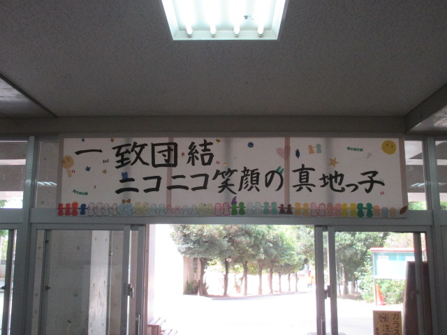 8月29日の宣言集会から10日ほどが経ちました。あの時宣言したことば,メッセージ等は正直薄れてきています。それがゆえに計画委員会は、メッセージの忘却を防ぐため、常時皆が目につく場所である児童玄関壁面にことばを大きく掲示しました。