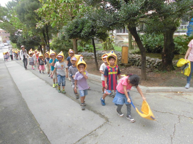 避難速度は大人の早歩きくらいで一気に坂道を登りました。低学年も