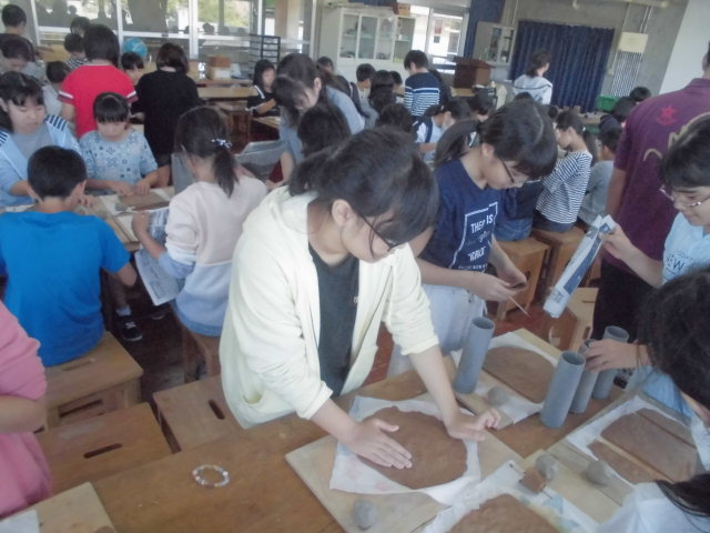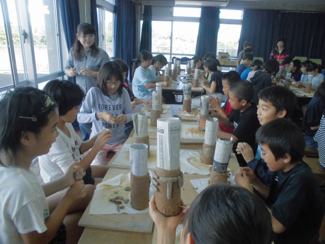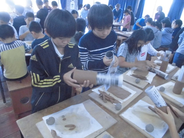 土をこね,成形し、パーツをくっつけて形が出来上がります。