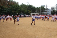 2月15日(水)に体育朝会で,全校児童での持久走をしました。