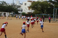5・6年生は5分間,3・4年生は4分間,1・2年生は3分間行い,皆とても楽しく元気よく走りました。