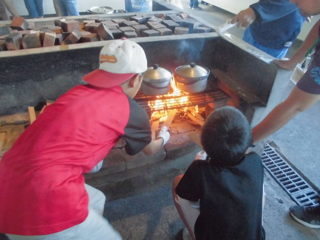 何の写真でしょうか。そうです5年生の宿泊学習における飯ごう炊飯活動の写真です。薪で調理をするという体験はとても貴重な体験でした。火が燃える原理、火を弱くするタイミング、煙で目が開けられないなど普段体験することのできないことばかりでした。次からはゴーグルが必要ですね。火が強すぎて御飯が黒くこげたところもありました。方言で焦げたご飯のことをナンチチゴハンと呼んでいました。考えてみたら今の子どもたちは炊飯器の時代なので焦げたご飯はないわけですよね。