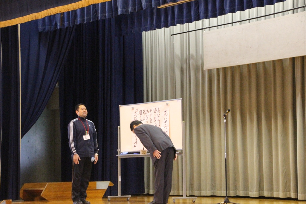 舞台で立ち止まりあいさつのやり方が紹介されました。