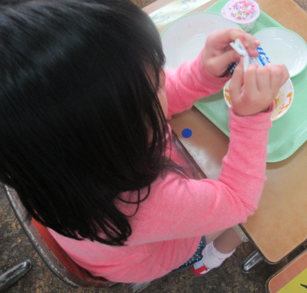 牛乳パックを一生懸命たたむ子、ごはんを完食したクラス