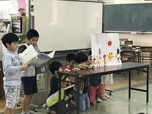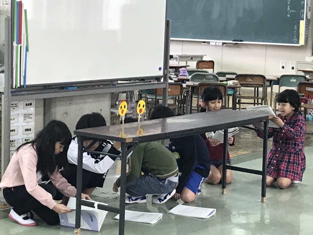 報告会では、各グループごとに大豆の歴史、良さ、活用などについて発表が行われました。紙芝居、壁新聞、ペープサート、グラフなどの方法を工夫して、質の高い発表内容でした。
