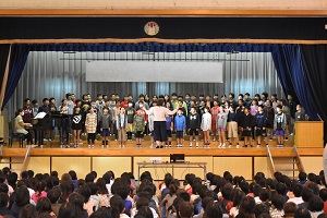 朝会ではまず6年生が、天使のような歌声を披露しました。明日の県大会では、精一杯に満足のいくような合唱ができることを祈っています。